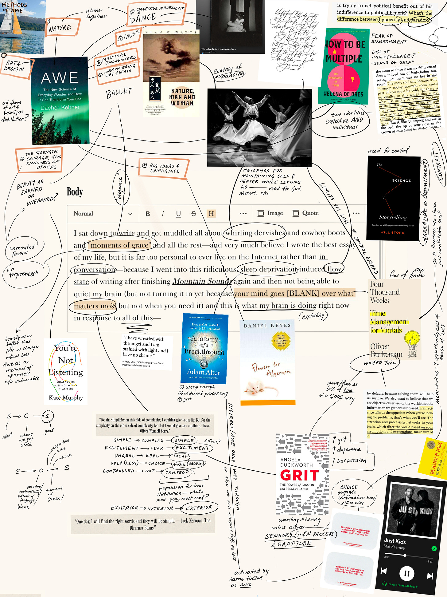 If I have to go back and reread something, or internalize a message, or analyze subtext—well, as a journalist, author, and reader, I have plenty of lenses and strategies I’ve probably unconsciously built to break through those blocks.6 This mind map makes me look even more intense, but it’s also how my brain works while I read. So: