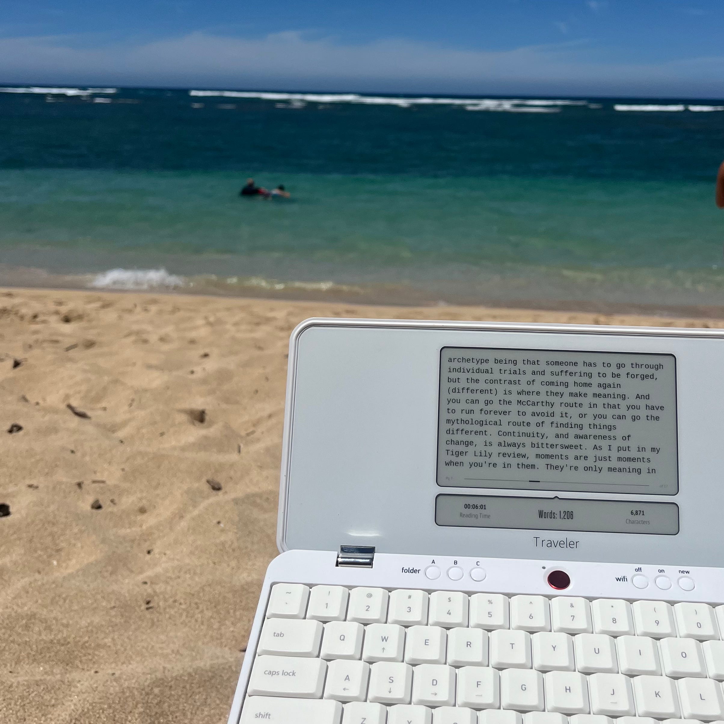 Frankly, there also might be some sunk-cost motivation involved in the substantial financial investment you’re making in the system. The sheer expense might force you to justify your purchase by actually devoting time and energy to your book. Worth considering if that’s your psychology. I started this on my Freewrite, and finished it on my laptop.